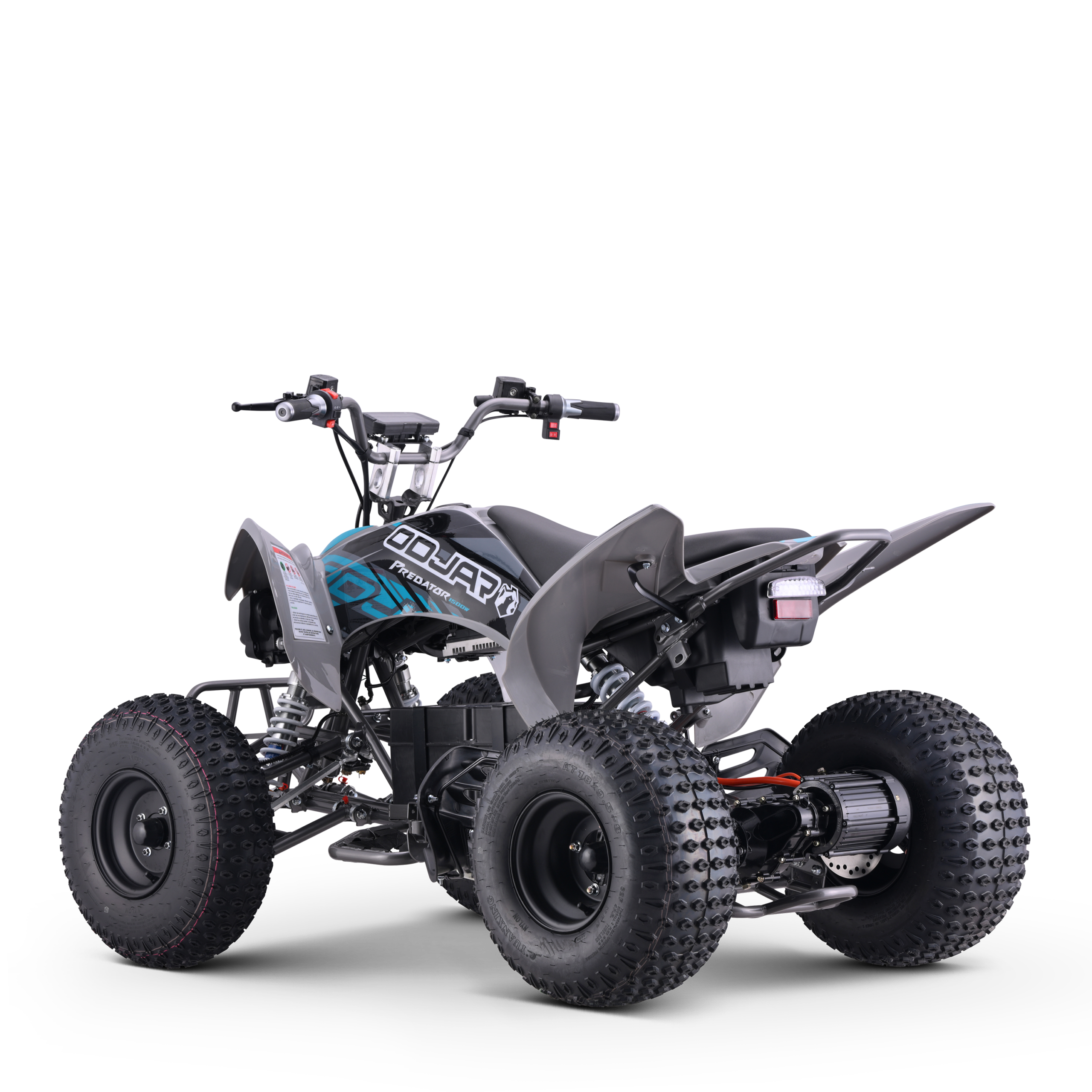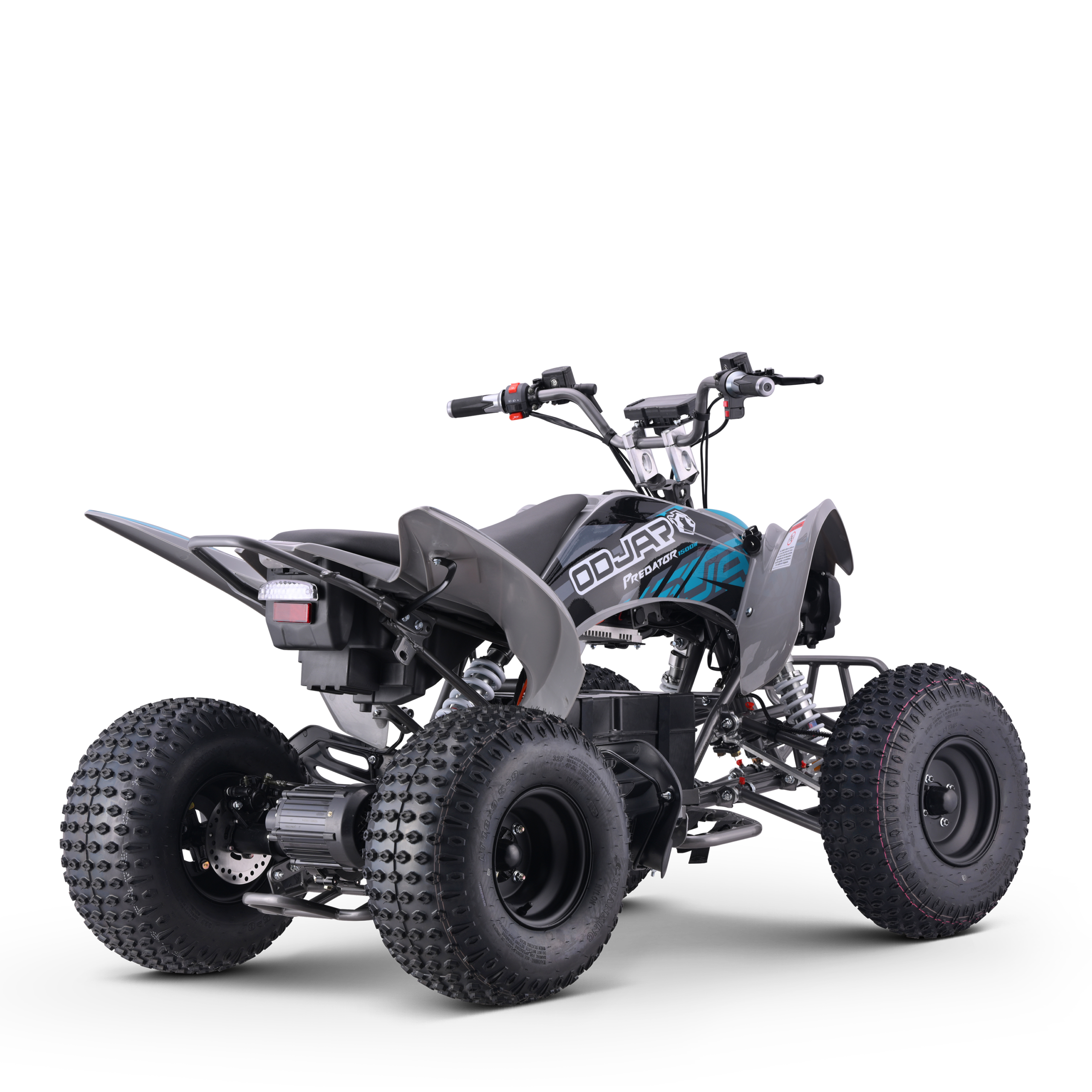 Le quad Odjar Predator 1500 W est un véhicule tout-terrain robuste et performant spécialement conçu pour les jeunes pilotes qui cherchent à explorer de nouveaux horizons. Avec son moteur électrique de 1500 W, ce quad offre une puissance adaptée pour une conduite dynamique et amusante. Sa conception et ses éléments de sécurité font du quad Predator 1500 W une option idéale pour les jeunes pilotes. Les moteurs proposés fournissent une puissance suffisante pour permettre aux jeunes pilotes de s'aventurer sur divers terrains tout-terrain avec confiance. La transmission automatique facilite la conduite, tandis que les freins adaptés aux enfants assurent un freinage efficace et sécurisé.
